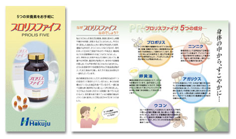 健康食品会社様 リーフレット(ディレクション/デザイン/イラスト/コピー/撮影コーディネート/DTP)